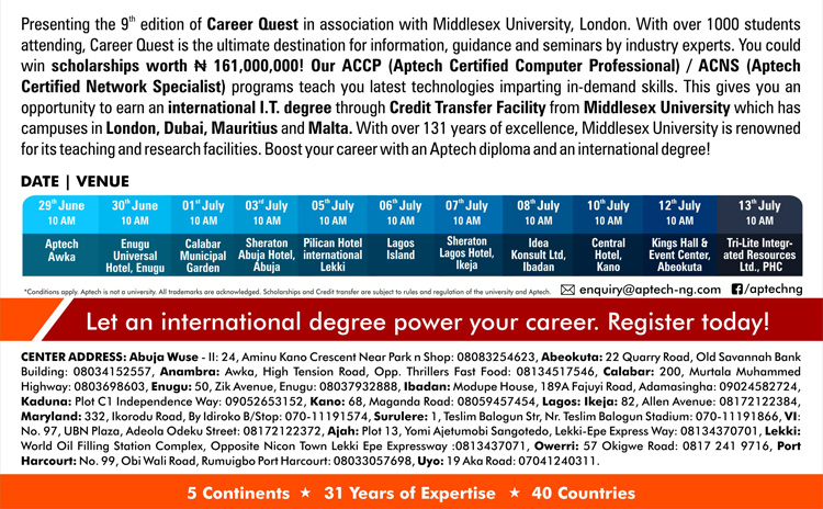 | 9 | 11 | 0.43% | aptech lagos |